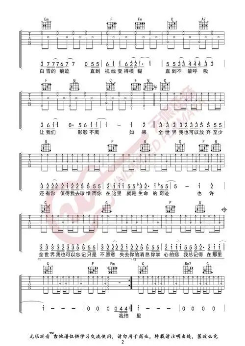 至少还有你吉他谱-林忆莲-《至少还有你》c调弹唱谱-高清六线谱1