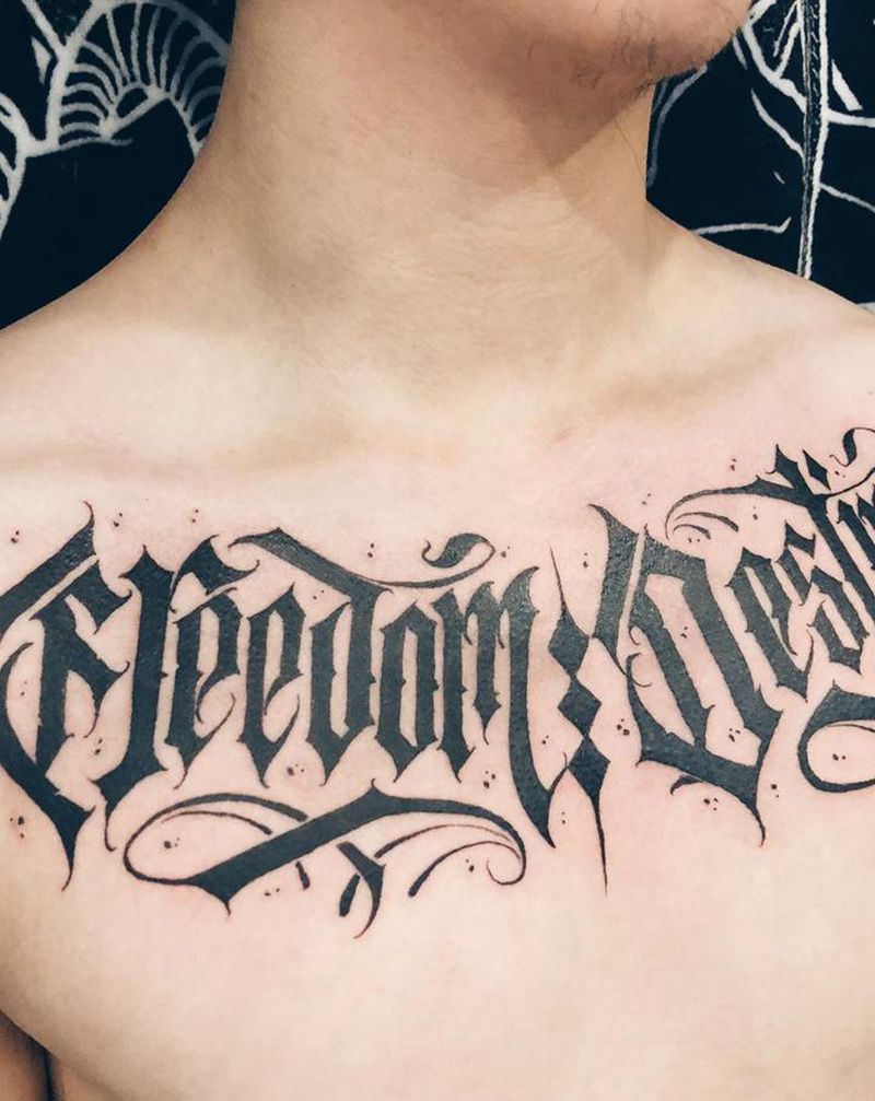 花体字纹身纹身图片_胸部花体字图腾英文纹身图案