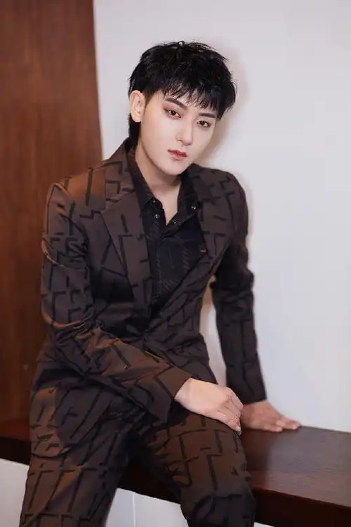 黄子韬这发型太帅了!不连接层次搭碎刘海a爆,咖色西装精致沉稳