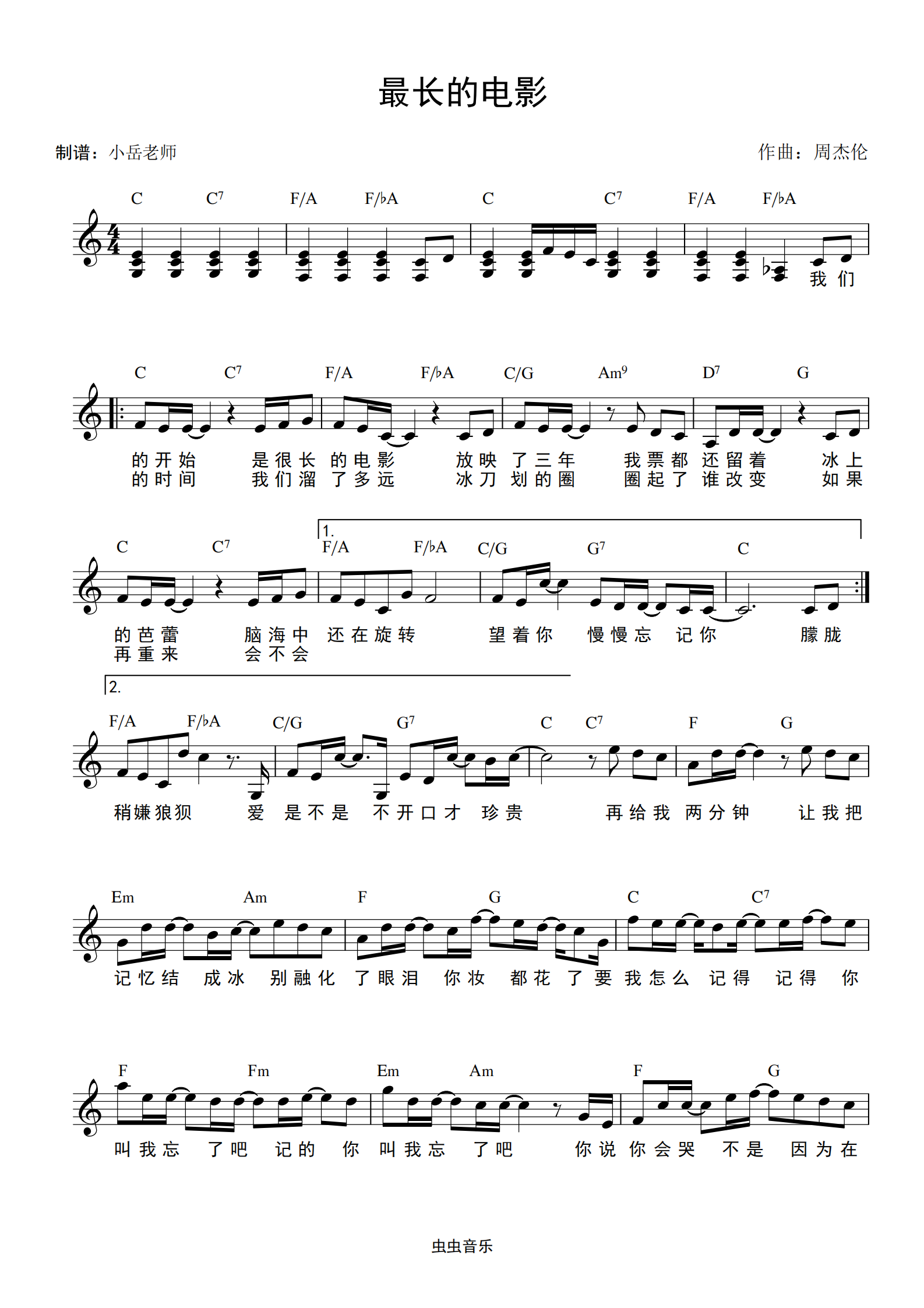 最长的电影 和弦谱钢琴谱-c调-虫虫钢琴
