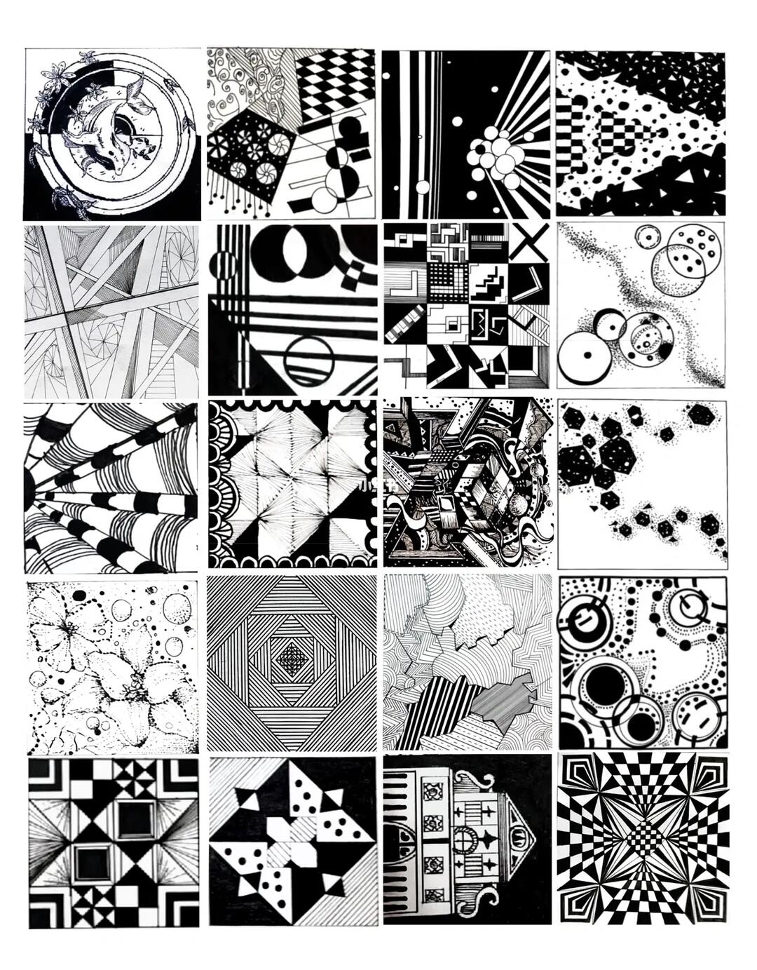 《线描构成》点线面的结合,黑白画.