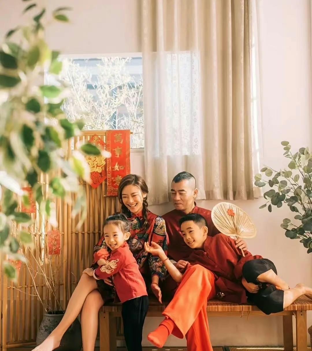 陈小春一家四口喜晒新年全家福