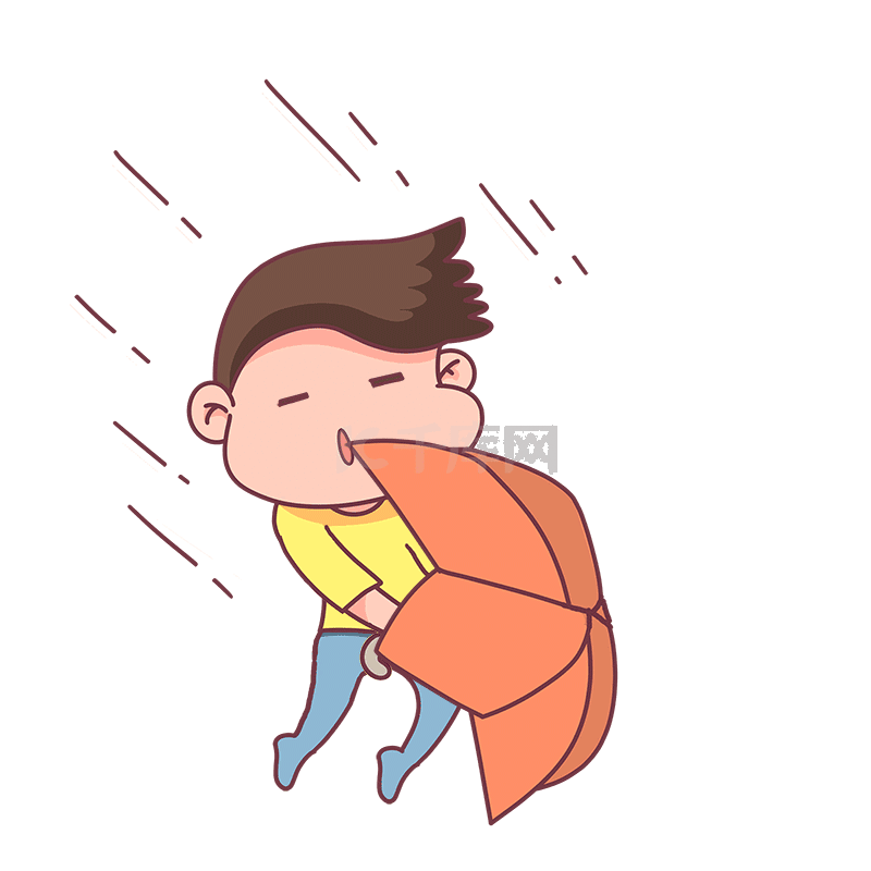 卡通大风下雨啦刮大风男孩被风吹走表情包动图gif表情包