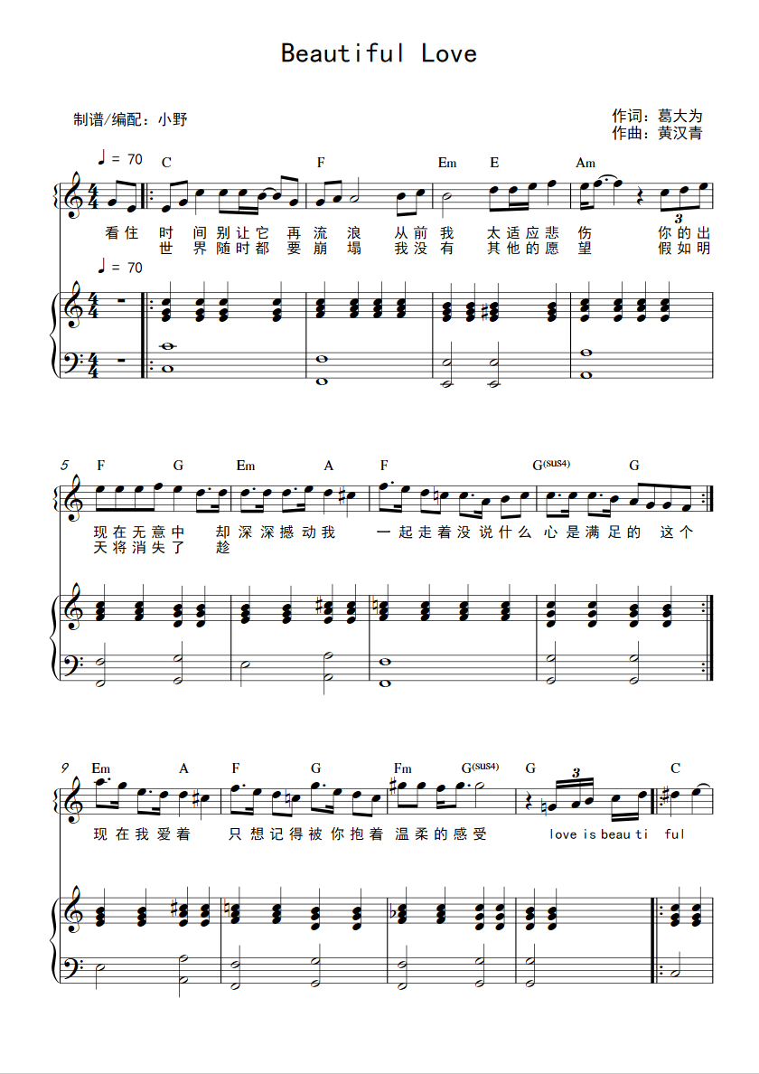 beautifullove和弦弹唱版