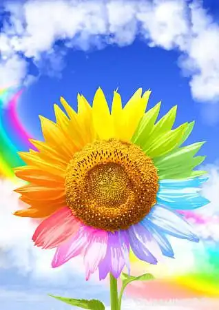 彩虹和向日葵,彩虹和向日葵在蓝蓝的天空