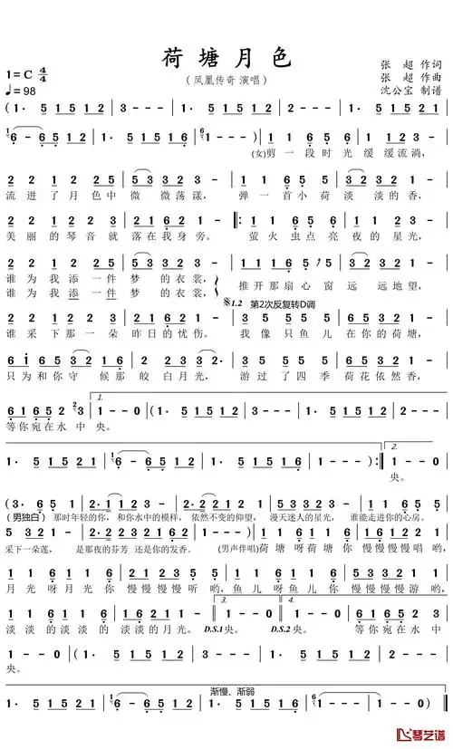 荷塘月色简谱-凤凰传奇-月下荷香鱼儿游,醉倒了1