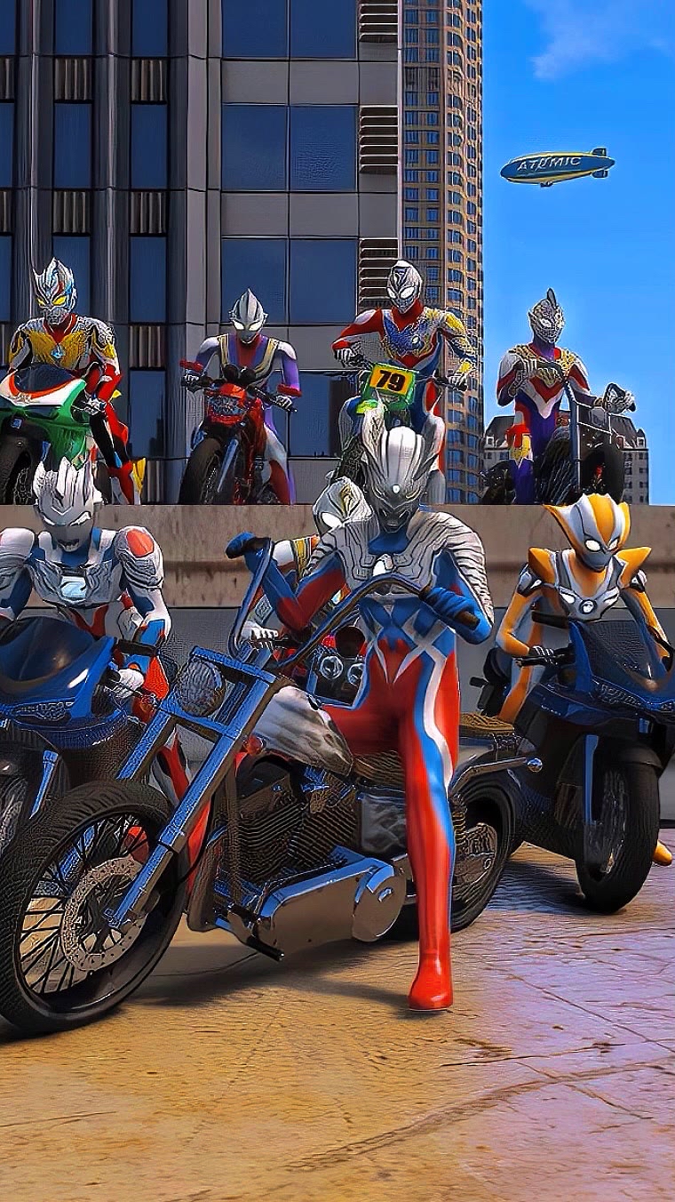 银河,赛罗,特利迦,欧布!奥特曼竟然骑摩托车!
