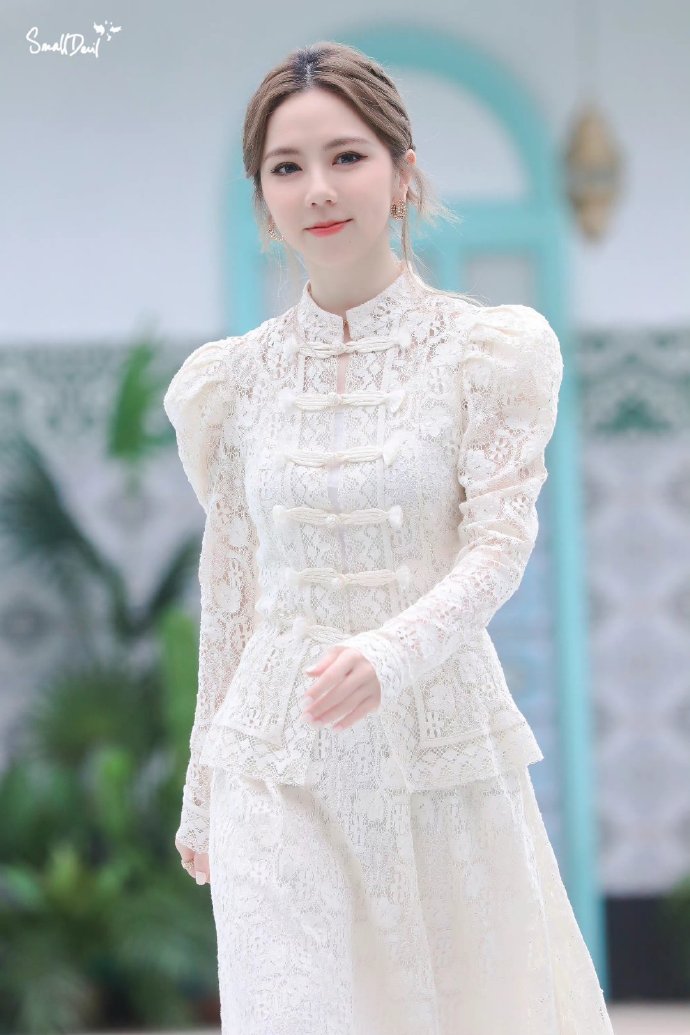 邓紫棋镂空蕾丝长裙#@gem鄧紫棋身穿白色镂空蕾丝长裙亮相东方风园耨