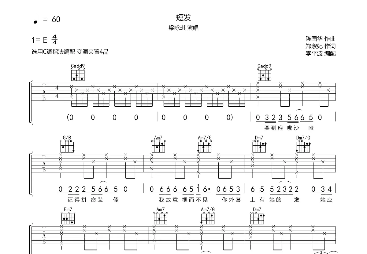 短发吉他谱_短发简谱