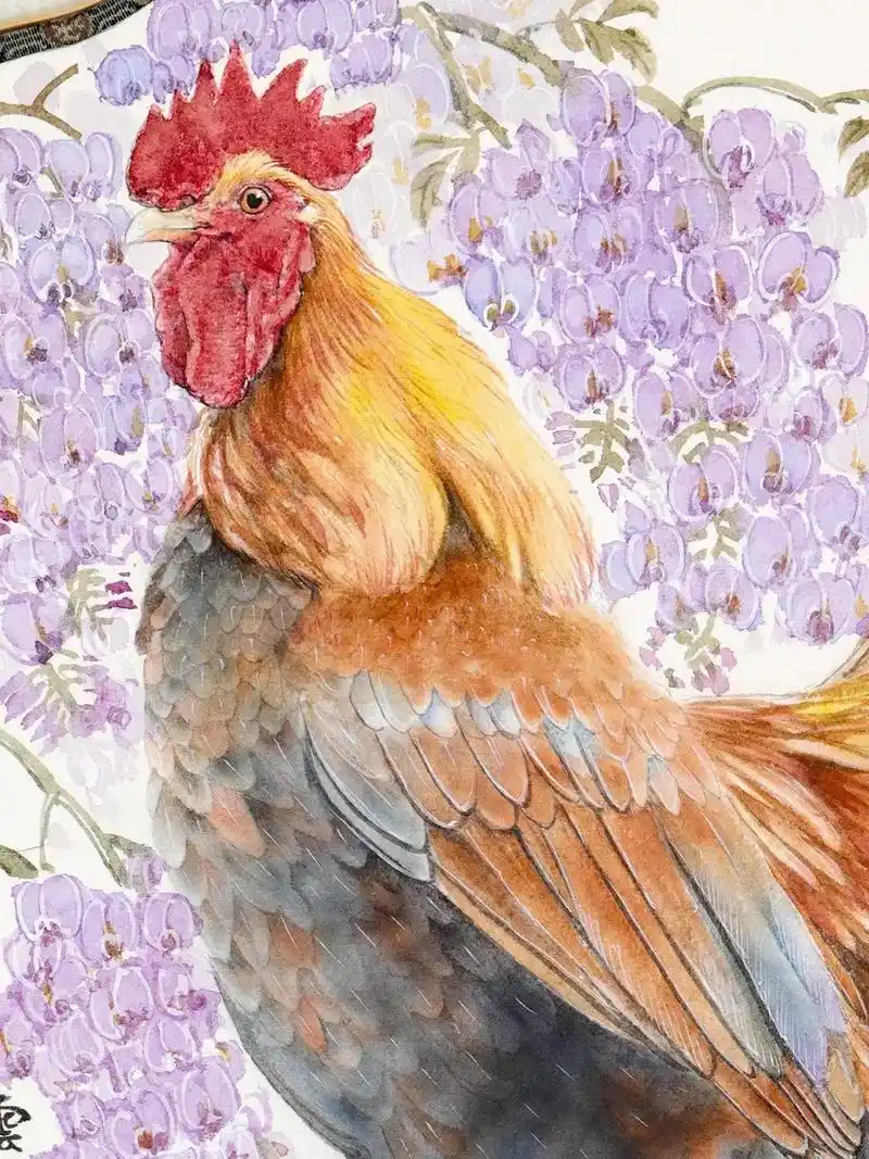 图文教程 | 陈军工笔鸡《紫气迎祥》设色步骤
