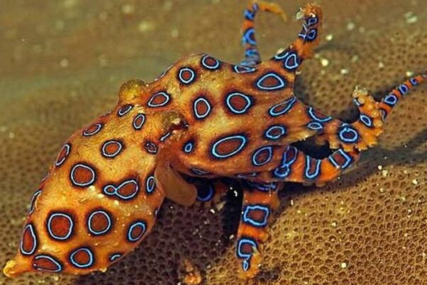 其中蓝环章鱼是一种很小的章鱼品种,其臂跨不超过厘米,大小仅有
