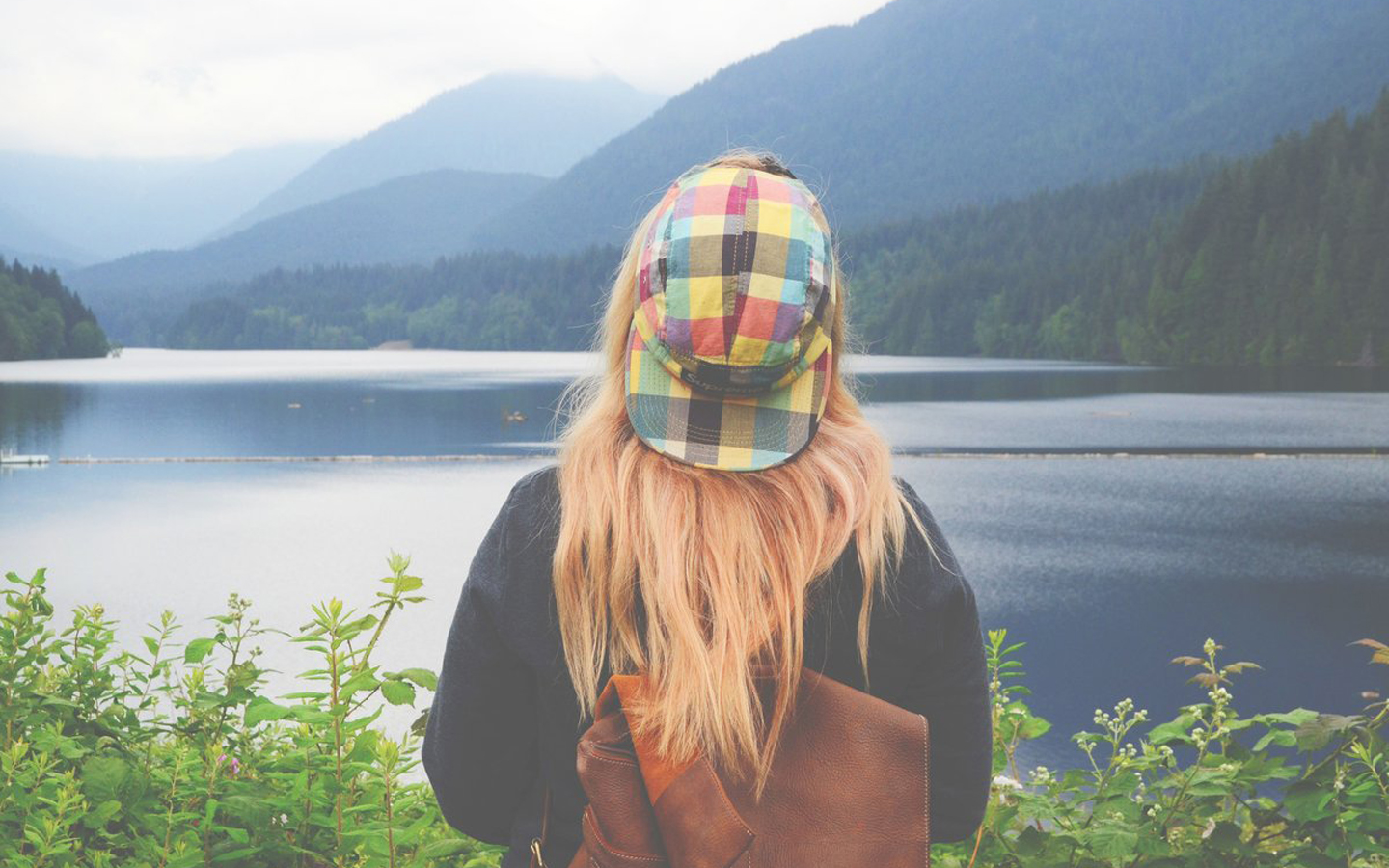 戴帽子女孩的唯美背影图片桌面壁纸