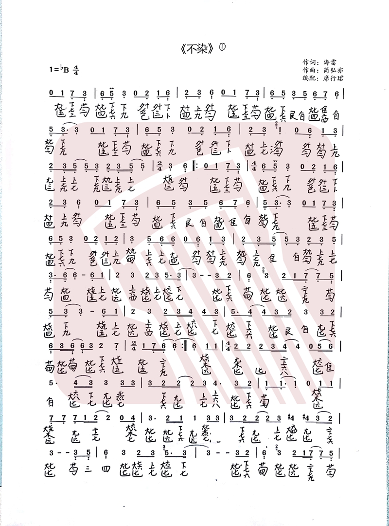 《不染》古筝简谱,古筝曲谱大全流行曲谱,适合初学的古筝曲谱