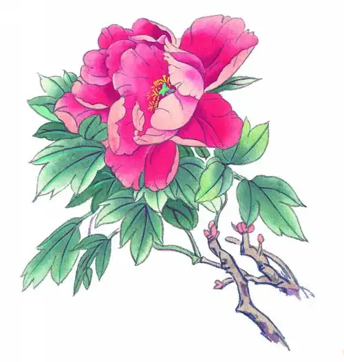 怎样画牡丹国画牡丹写意牡丹图上升式构图和横出式构图的两种国画技法