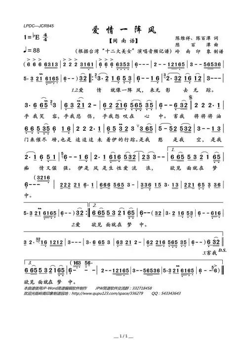 《爱情一阵风》文本歌词陈维祥,陈百潭词陈百潭曲台湾"十二大美女"