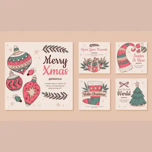 day34钢笔手绘描边圣诞节卡通海报