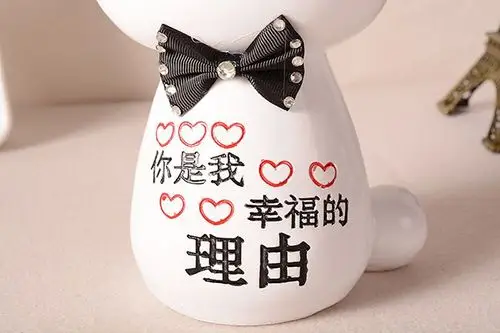 i1113 黑白可爱兔子情侣礼物,爱情宣言,相爱一生,存钱罐储蓄罐