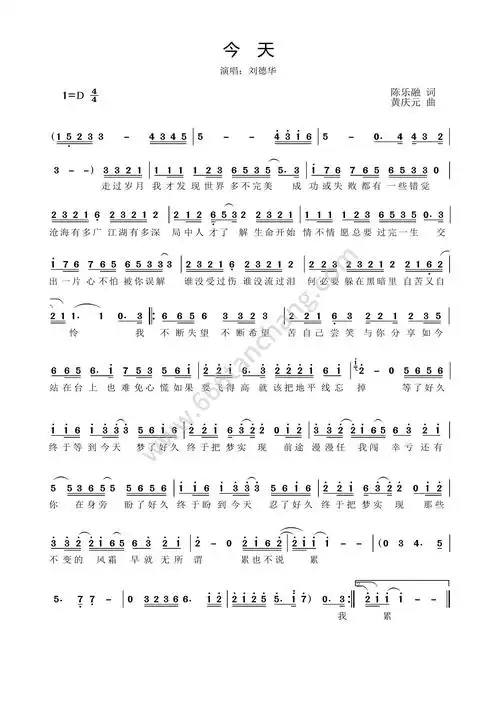 歌曲简谱刘德华今天免费高清歌谱简谱流行弹唱网