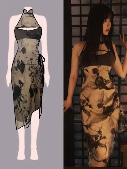中西方文化的结合,女子在身上画了一件旗袍,在大街上引人围观!