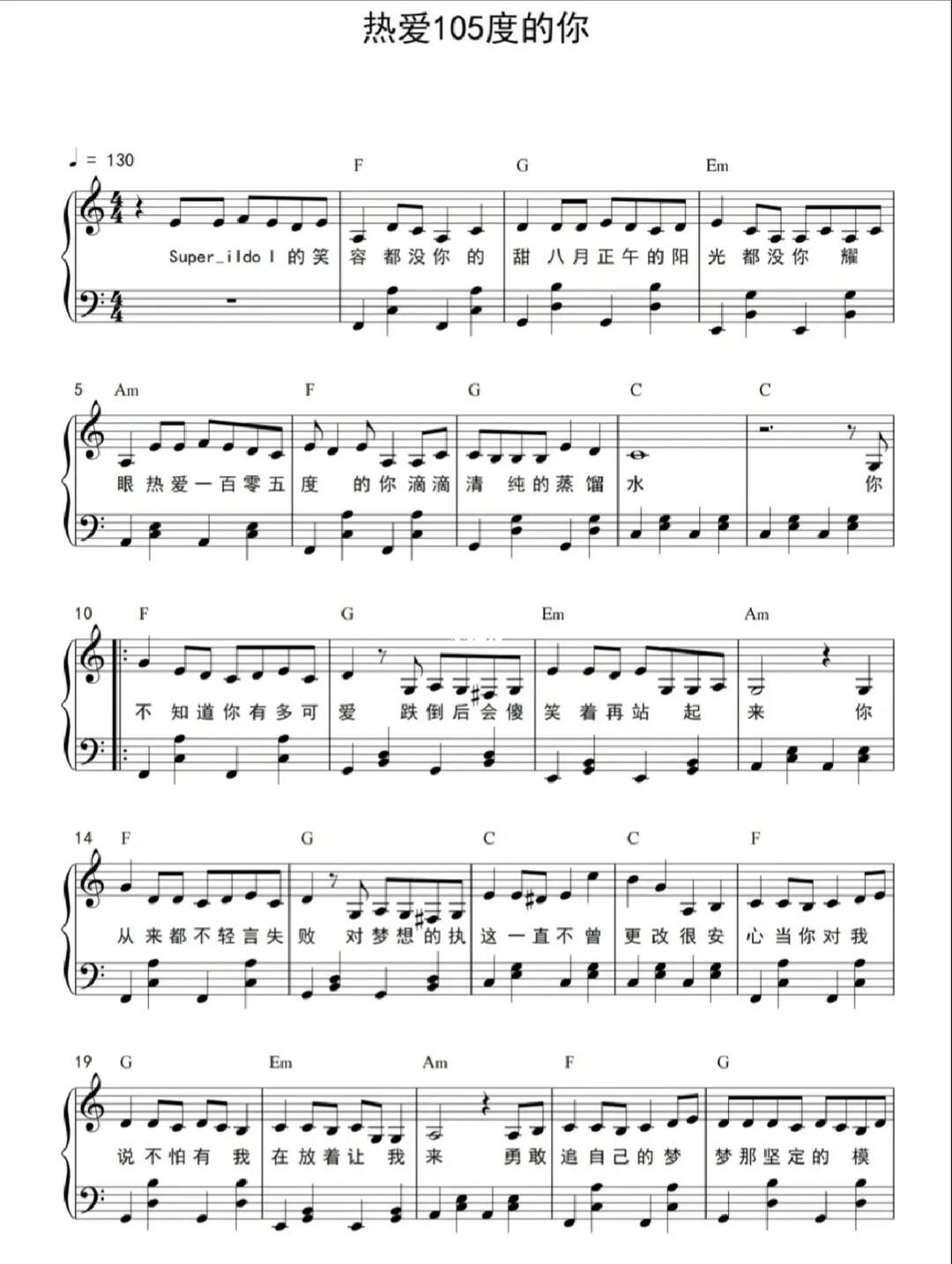 热爱105度的你钢琴简谱