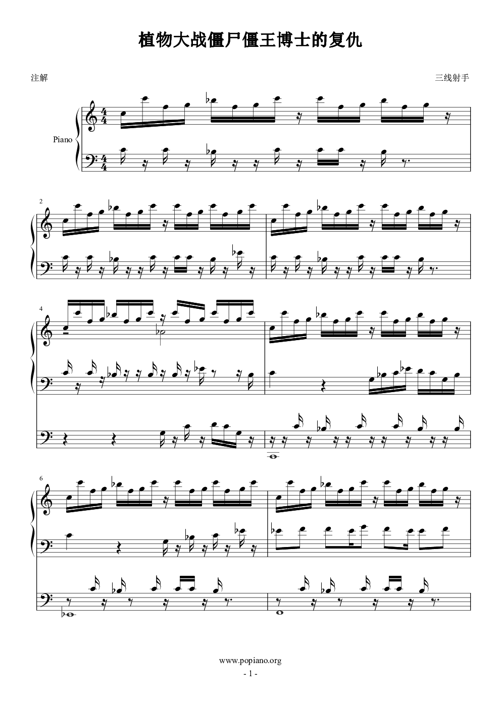 植物大战僵尸僵王博士的复仇钢琴谱-c调-虫虫乐谱