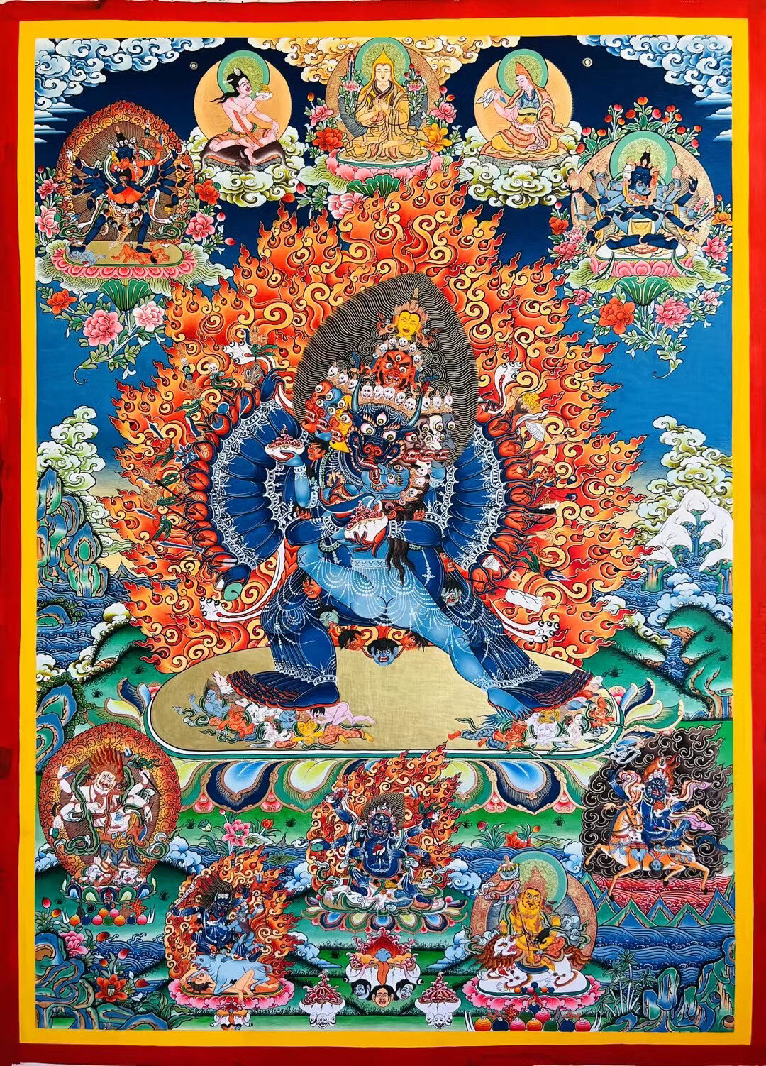 在藏传佛教中,大黑天被视为毗卢遮那佛降魔时所呈现的忿怒相.🐉