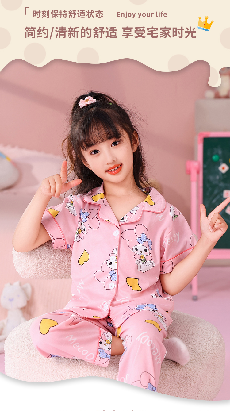 夏季云朵棉儿童睡衣可爱甜美女童开衫翻领家居服双短套装10-18码 - 17