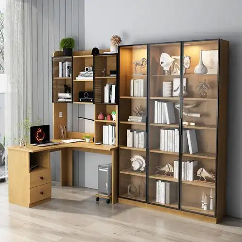 实木书柜带书桌书架闪电客衣柜一体电脑写字台转角加组合柜子学习桌