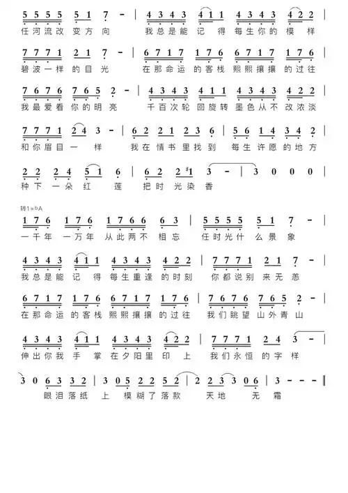 天地无霜智能简谱《香蜜沉沉烬如霜》对唱主题曲