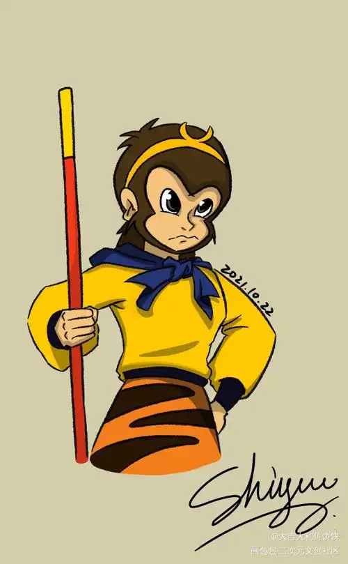 发一发以前摸的猴子_西游记孙悟空平涂绘画绘画作品
