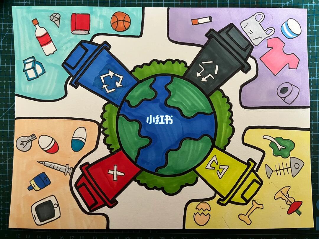 小学生保护环境创意画 垃圾分类从我 - 抖音