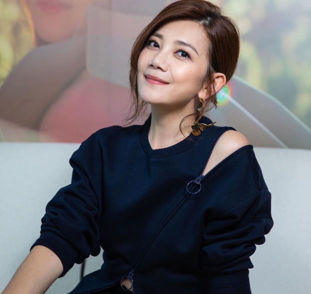 梁静茹晒照长发披肩温婉浅笑 单手托腮肤质白皙