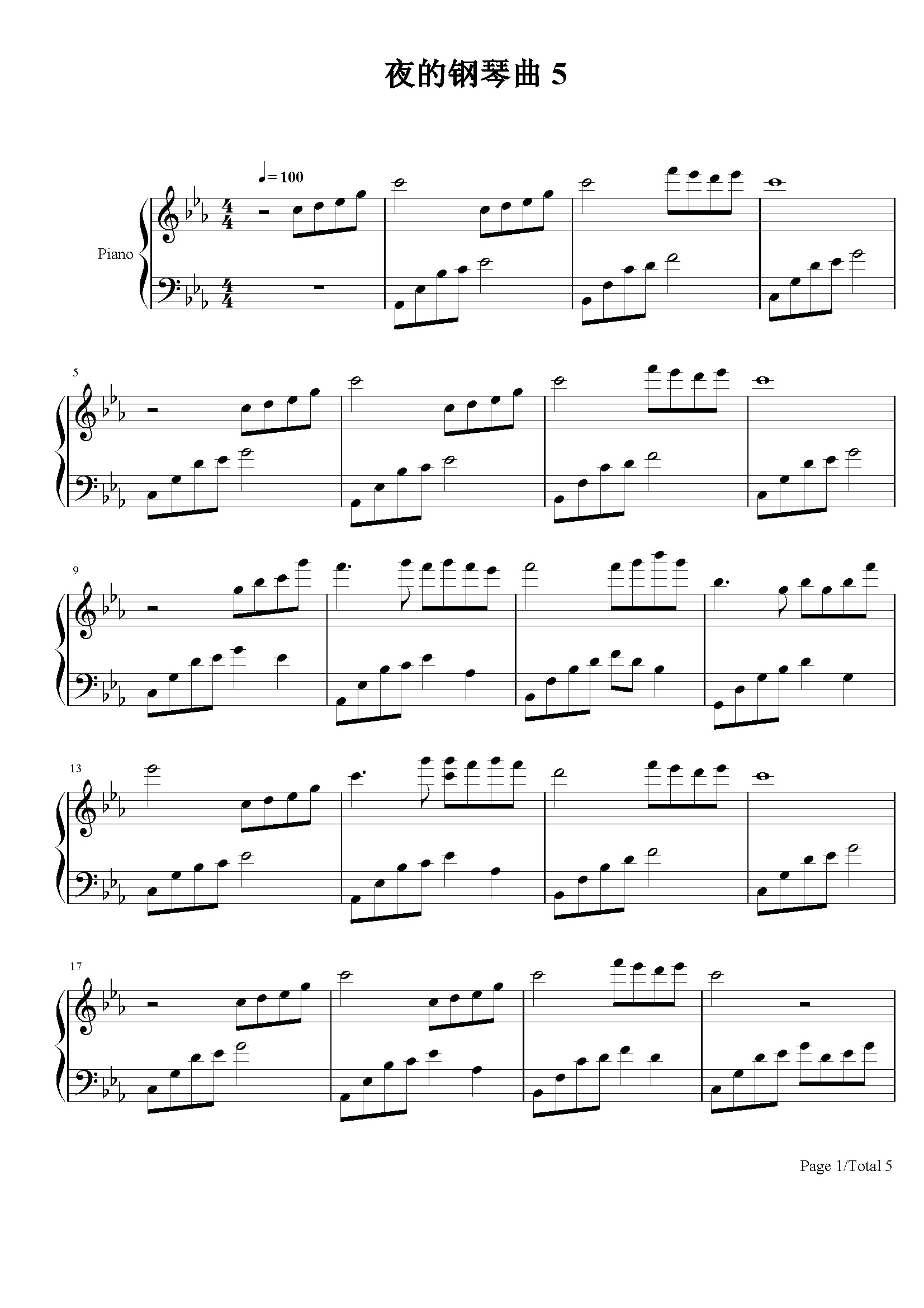 夜的钢琴曲五c调