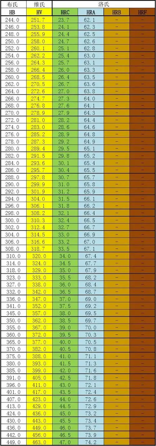 布氏,洛氏,维氏 硬度换算表