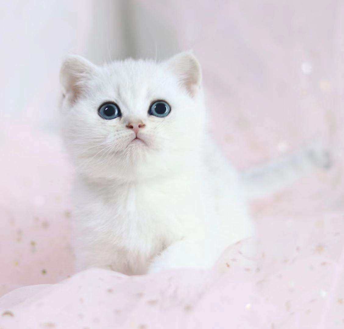 英短蓝眼银点乳白色幼猫家养白猫银渐层纯种英国短毛猫宠物猫活体