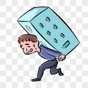 手绘卡通背负压力前行的男人插画免抠元素