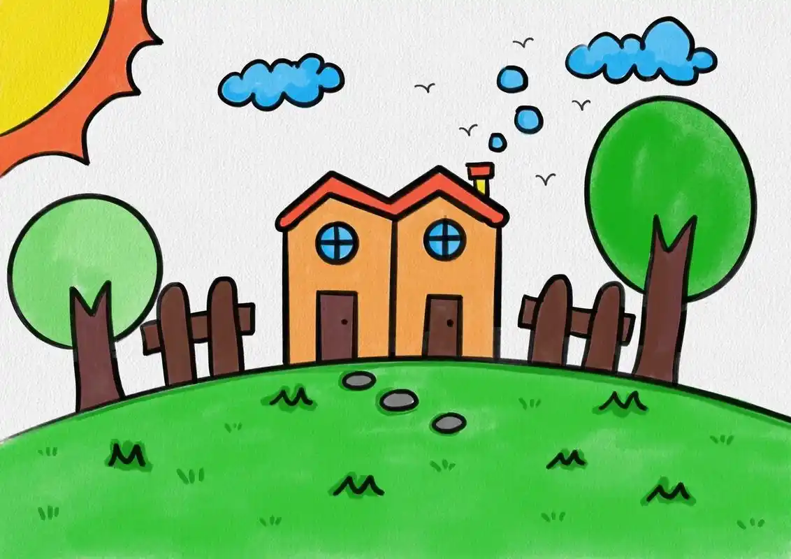 超简单的春天风景简笔画教程.春天在哪里?春天当然在家门口啦! - 抖音
