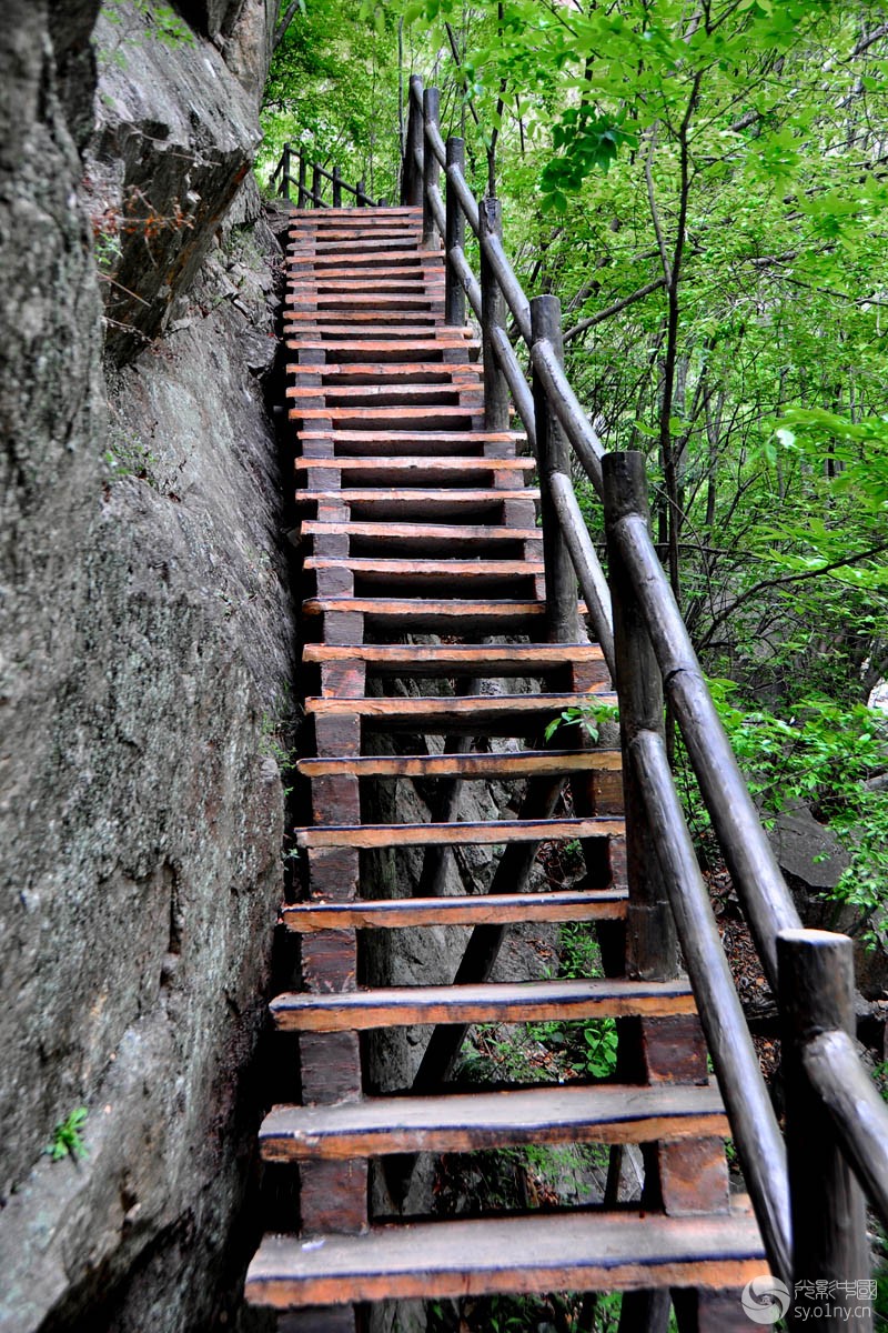 的云雾,漂流在峦中,如置身仙境;而且有华山之险,一条笔直笔直的通天梯