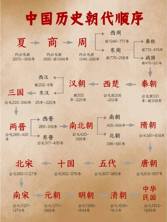 一张图轻松了解中国历史朝代顺序75完整收藏 中国历史朝代口诀来了
