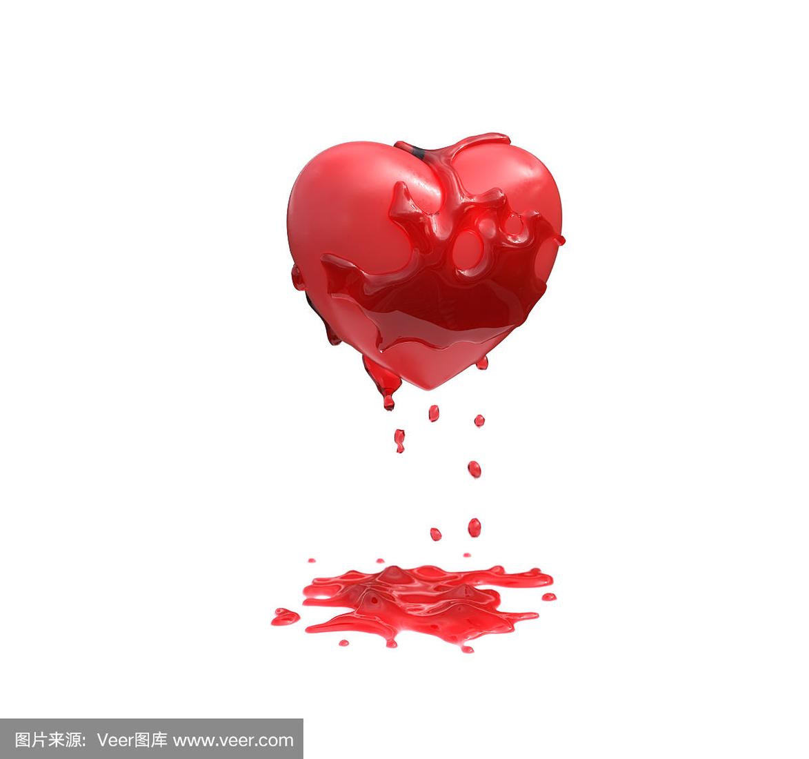 破碎的心,破碎的心与飞溅的血液,矢量图像的插图