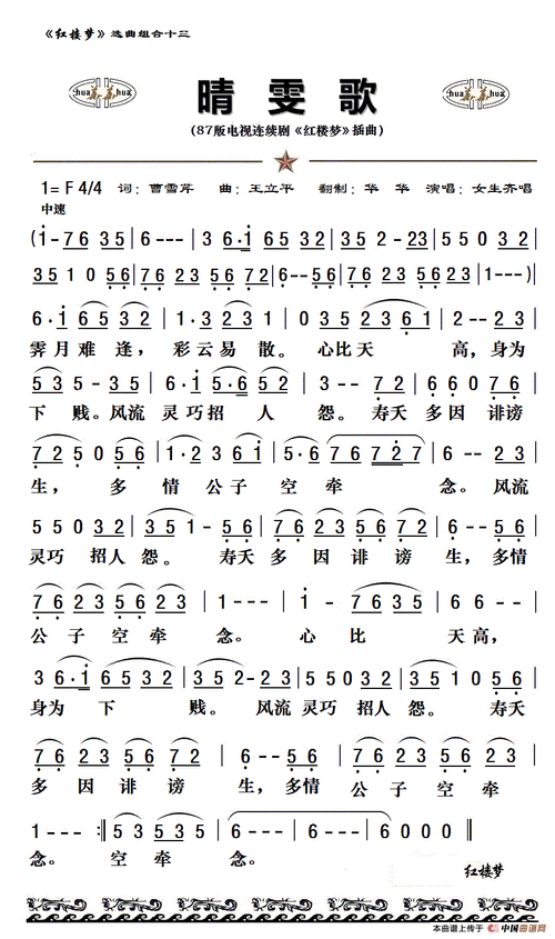 红楼梦曲简谱(歌词)_红楼梦插曲_谱友好心情999上传