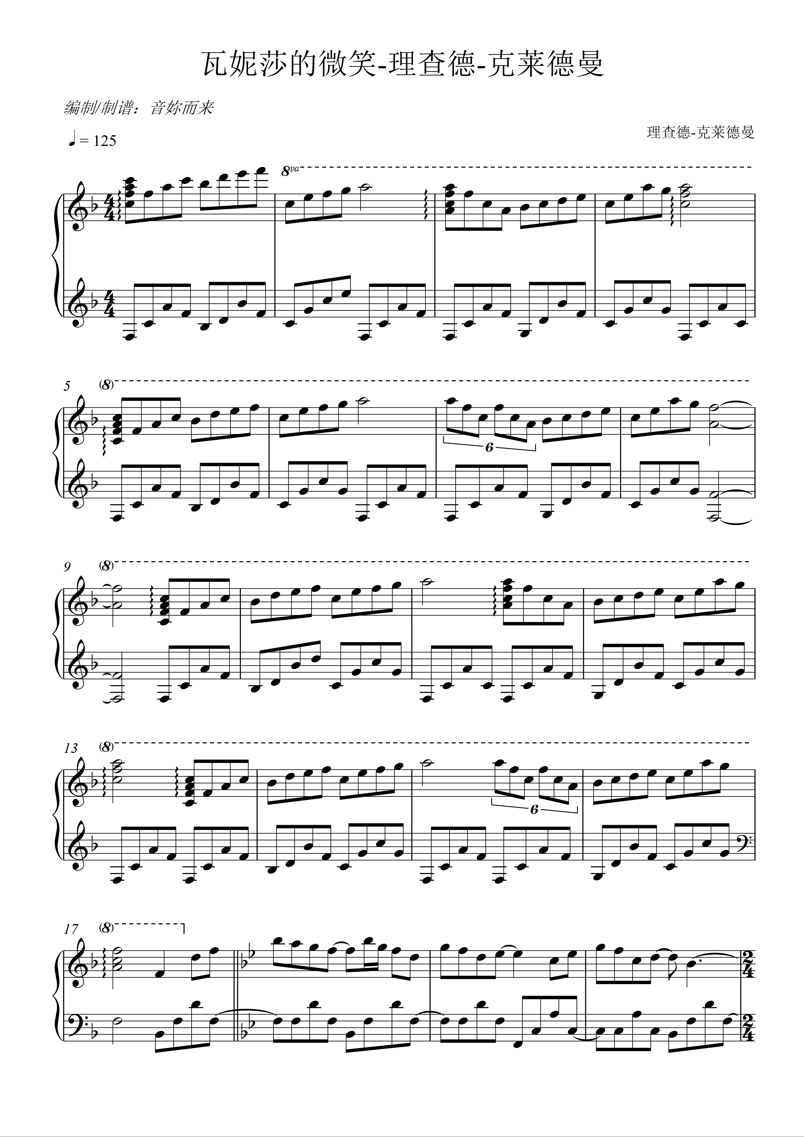 瓦妮莎的微笑-理查德-克莱德曼钢琴谱-音你而来-虫虫乐谱