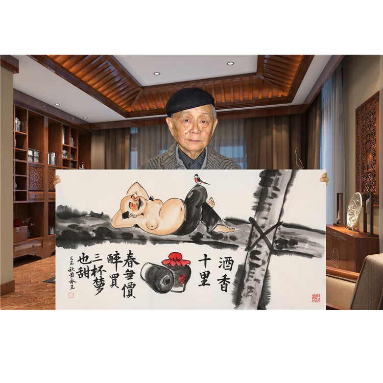 黄永玉字画手绘三尺横幅酒香十里小品名人国画装饰礼品带收藏合影