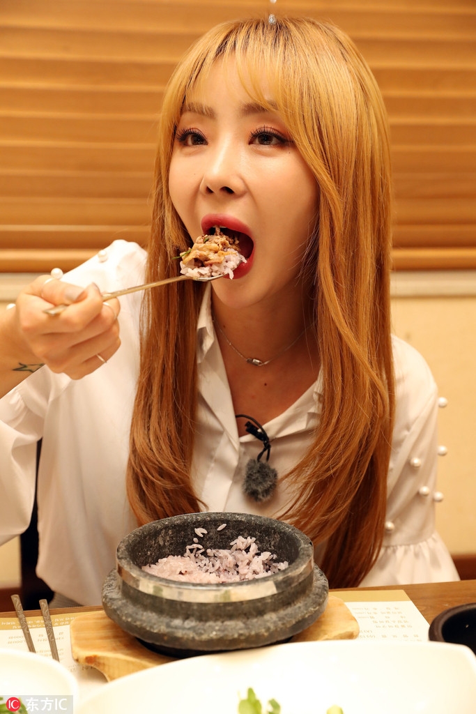 组图:朴孝珍清爽造型接受采访 与美食为伍大快朵颐