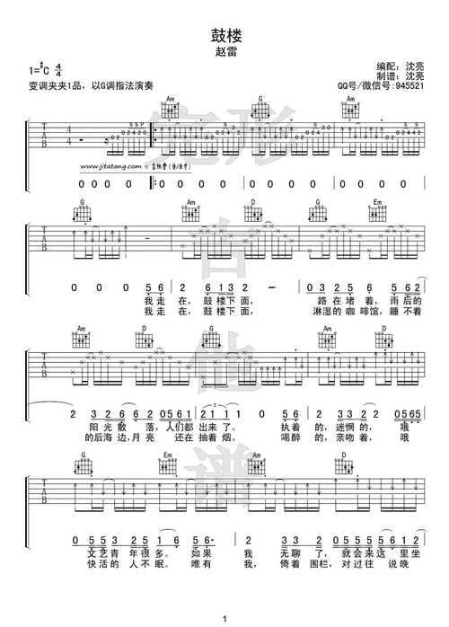 鼓楼吉他谱 c调简单版_完形吉他编配_赵雷-简谱网