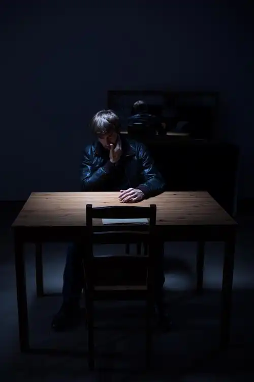 一个男子坐在黑暗的空房间里