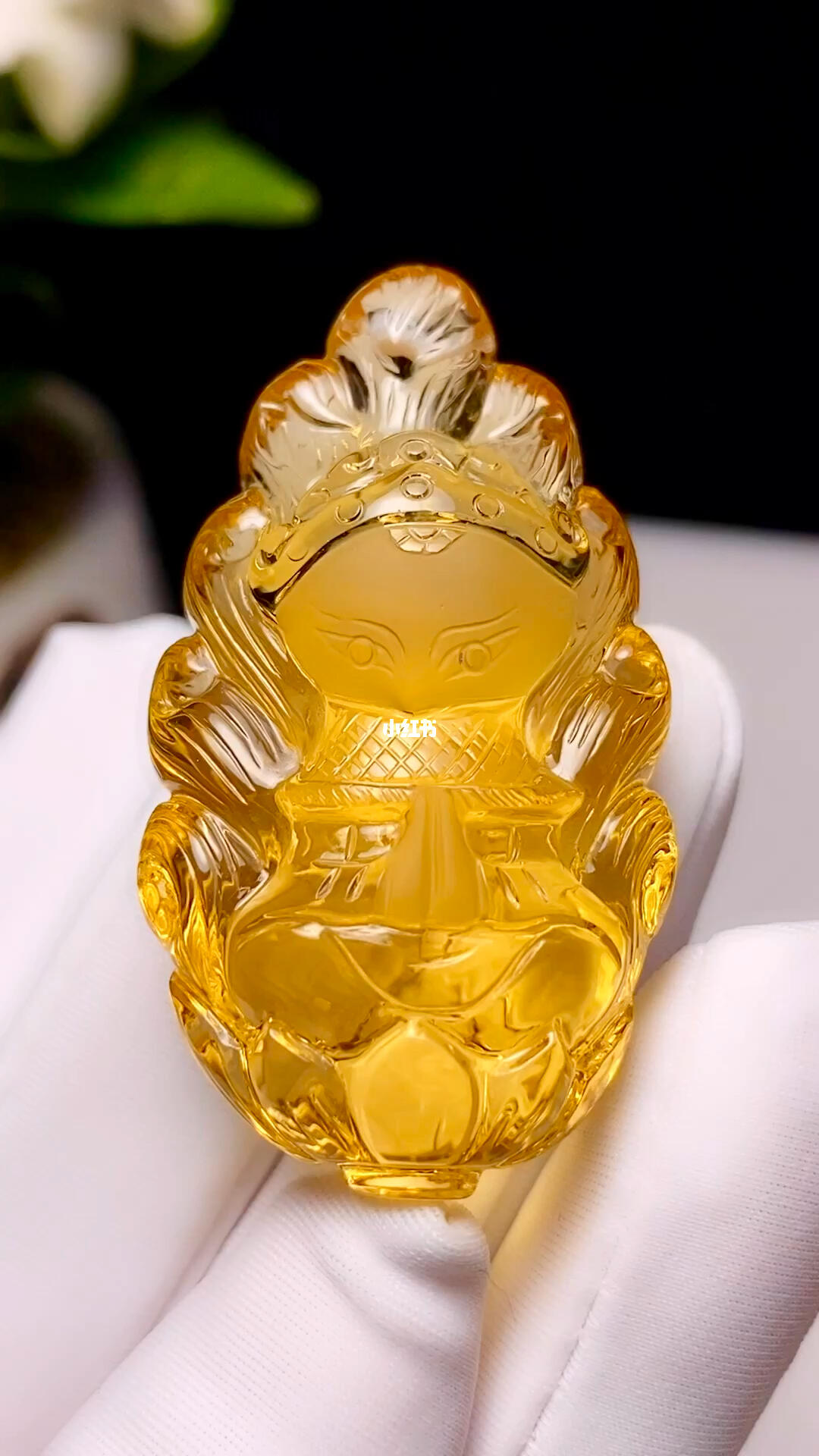 纯天然巴西黄水晶九尾狐吊坠造型饱满
