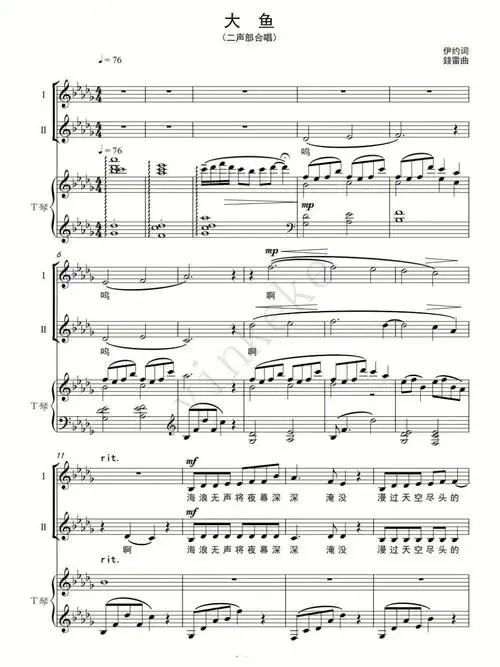 大鱼同声三部合唱谱 歌谱简谱网