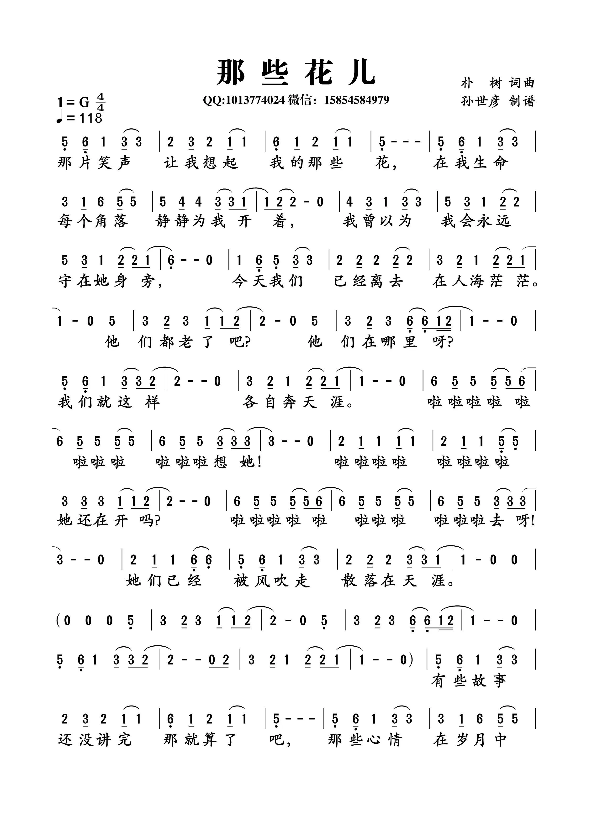 《那些花儿》_歌谱简谱_歌词简介_曲谱资料