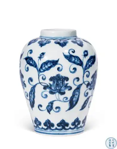 明宣德 青花缠枝花纹罐